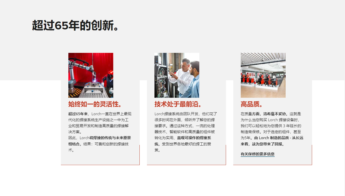 保 證 在洛奇,質(zhì)量不是承諾,而是保證。因此,作為 Lorch 客戶,您可以從延長的制造商保修期(比法律要求的 3 倍)中受益。此外,Lorch 還為您提供 5 年主整流器和變壓器保修,并保證在 Lorch 設(shè)備生產(chǎn)后至少 10 年內(nèi)提供備件。 在購買后 30 天內(nèi)注冊您的焊接系統(tǒng),以獲得 Lorch 保修延期。在 Lorch 服務(wù)團(tuán)隊(duì)成功驗(yàn)證您的注冊請求后,您將通過電子郵件收到保修延期證書。 使用您提供的數(shù)據(jù),我們可以毫不費(fèi)力地處理您的個(gè)人保修索賠,從而更快地處理。 您將保修期延長至3或5年 - 這真的是洛奇! 立即注冊您的產(chǎn)品!