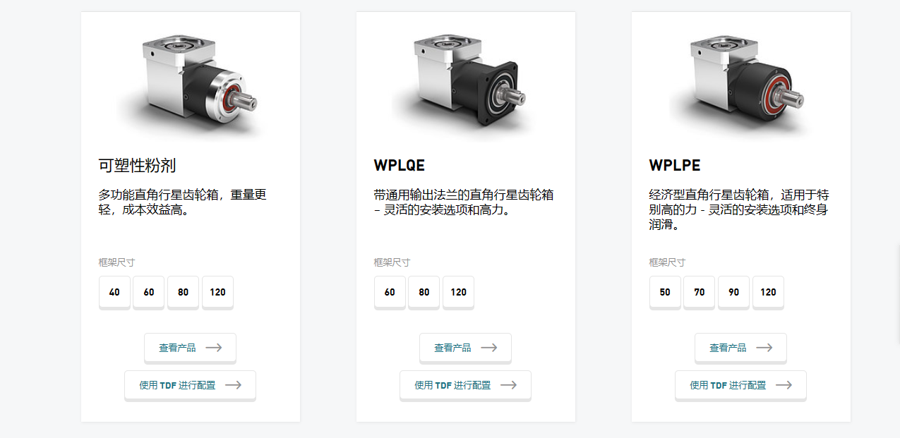 帶輸出軸的行星齒輪箱的輸入法蘭可單獨適應您的電機。緊湊的行星減速機單元帶有輸出軸和伺服電機,可提高您的靈活性。您可以從我們產品系列的各種性能等級中選擇最適合您應用的直角行星減速機。