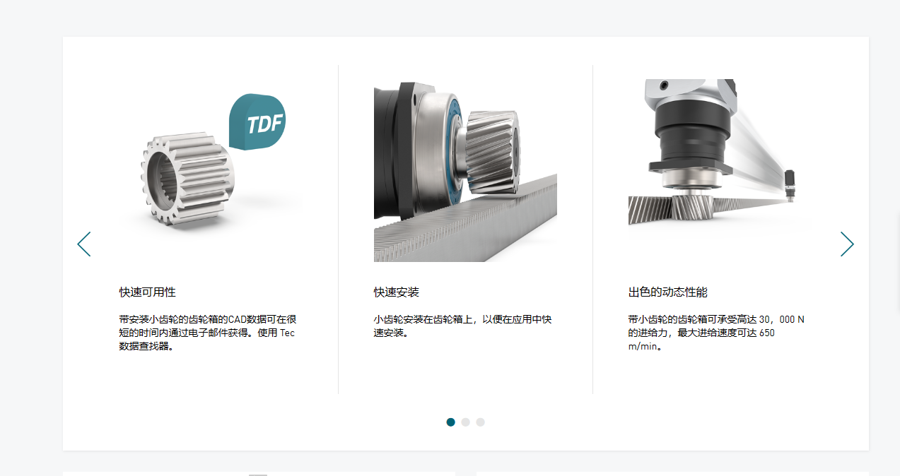 集成的齒輪箱/小齒輪組合為齒輪齒條驅動提供了最佳的技術協(xié)調。由于精密齒輪,眾多解決方案選項同時提供高動態(tài)和高承載能力。