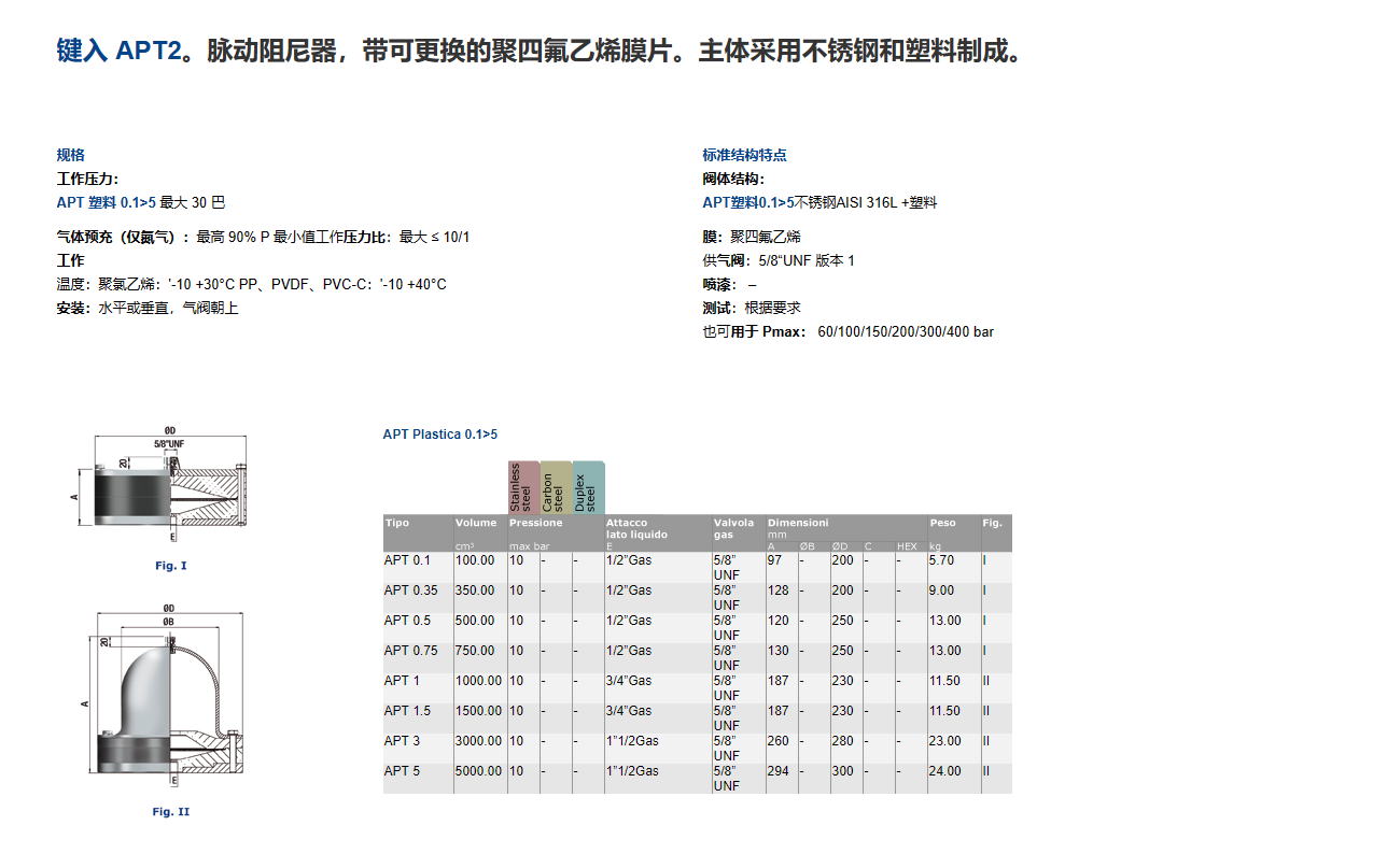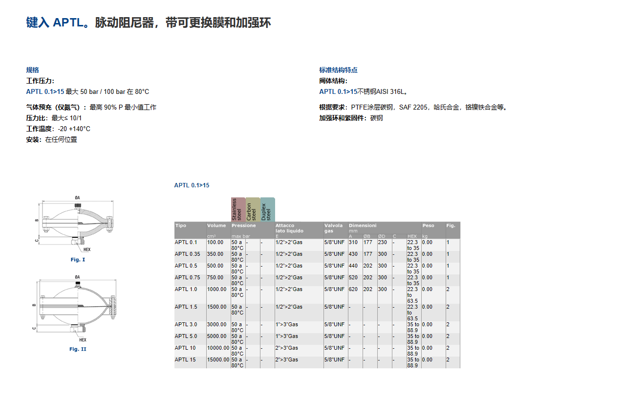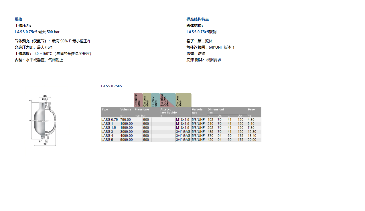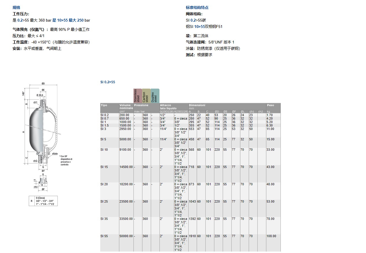 在Saip在線商店中,您可以找到各種各樣的膜蓄能器,例如經(jīng)典的AMP 0.5 Lt碳鋼P.max 330 bar。它由碳鋼、不銹鋼和雙相制成,是同類產(chǎn)品中最暢銷的產(chǎn)品之一。與 L 0.025 / 0.35 Lt 碳鋼、不銹鋼或雙相鋼一樣,P.max 150/250 bar,形狀更圓潤,末端有兩個大閥門。提出的另一篇優(yōu)秀文章是 LAV 0.025 / 2.5 Lt 由碳鋼、不銹鋼和雙相鋼制成,帶有 P.max 150 /330 bar,帶有細長的線條和側(cè)面加強件。