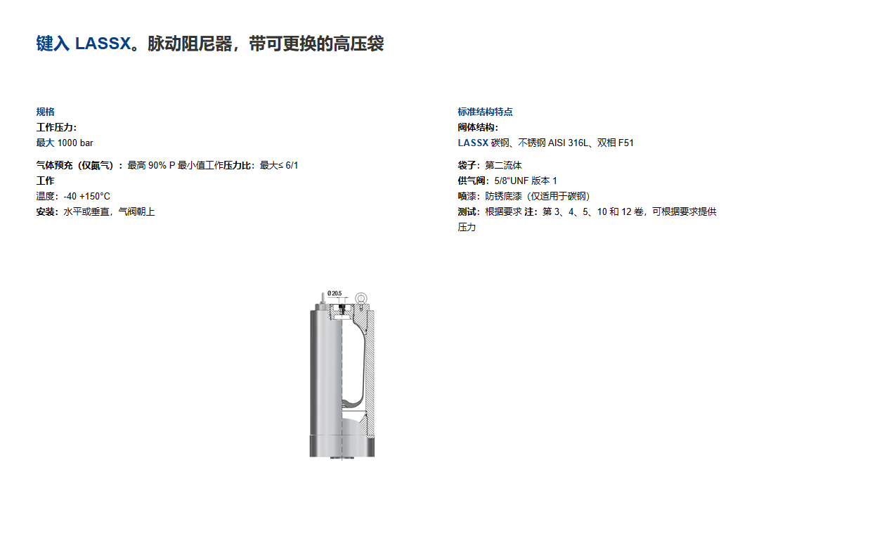 我們提供全系列的液壓氣動蓄能器和脈動阻尼器,從袋式到隔膜類型,從活塞到根據(jù)客戶要求設(shè)計的特殊蓄能器,即使是最復(fù)雜的應(yīng)用。