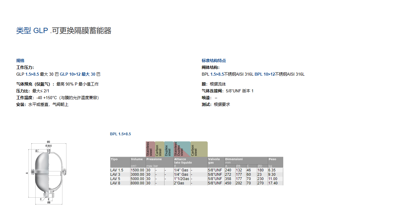 SAIP膜蓄能器的質(zhì)量 該領(lǐng)域最有經(jīng)驗的人都知道,膜蓄能器是一種首先安裝在液壓系統(tǒng)上的附件。油從下部進入以減少可用氣體的體積,而后者被壓縮并在出現(xiàn)壓降時發(fā)揮作用。 正是由于它執(zhí)行的重要功能,它安裝在與執(zhí)行器相鄰的位置,以控制要控制的不平衡。因此,安全塊安裝在蓄能器和蓄能器的安裝位置之間,蓄能器由安全閥、壓力表和排除閥組成。這有助于系統(tǒng)的維護,對操作的干擾范圍產(chǎn)生輕微影響,既可以控制氣體的充氣壓力,也可以進行預(yù)防性更換以及修復(fù)可能的故障。 不同類型的膜蓄能器 通常,膜蓄能器因其形狀而與袋式蓄能器混淆。事實上,兩者都配備了一種尺寸減小的圓柱體,此外還具有分離壓縮氣體和油的彈性體部件。盡管有這些相似之處,但它們呈現(xiàn)出實質(zhì)性的結(jié)構(gòu)差異,涉及膜蓄能器的缺乏焊縫,膜蓄能器恰好是一個整體元件,與配備螺紋和焊縫的袋式蓄能器不同。 最常用于制造此類元件的建筑材料是碳鋼,盡管有不銹鋼、聚丙烯、PVC 和其他類型的材料流通的系統(tǒng)。 在Saip在線商店中,您可以找到各種各樣的膜蓄能器,例如經(jīng)典的AMP 0.5 Lt碳鋼P.max 330 bar。它由碳鋼、不銹鋼和雙相制成,是同類產(chǎn)品中最暢銷的產(chǎn)品之一。與 L 0.025 / 0.35 Lt 碳鋼、不銹鋼或雙相鋼一樣,P.max 150/250 bar,形狀更圓潤,末端有兩個大閥門。提出的另一篇優(yōu)秀文章是 LAV 0.025 / 2.5 Lt 由碳鋼、不銹鋼和雙相鋼制成,帶有 P.max 150 /330 bar,帶有細長的線條和側(cè)面加強件。 事實上,該公司可以滿足客戶的所有需求,這些客戶必須處理具有特定特性的特殊工藝。只需打電話并解釋您的需求,即可獲得幫助,并從工作人員那里獲得大量服務(wù),細心周到,隨時準(zhǔn)備處理任何問題。 膜蓄能器的所有優(yōu)點 這種類型的蓄能器可以配備不同類型的彈性體,具體取決于使用條件。例如,如果將其安裝在必須在非常低的溫度下工作的機器上,這些可能會使元件變形和硬化,因此我建議使用基于環(huán)氧氯丙烷(ECO)的膜蓄能器。相反,如果工作條件是標(biāo)準(zhǔn)的,最好采用丁腈橡膠(NBR)膜,實用,有彈性,耐用。 在任何情況下,都可以購買配備壓力表和不同連接的特殊預(yù)充電套件。這是一個方便的情況,可以用來執(zhí)行定期檢查以檢查故障和損壞。