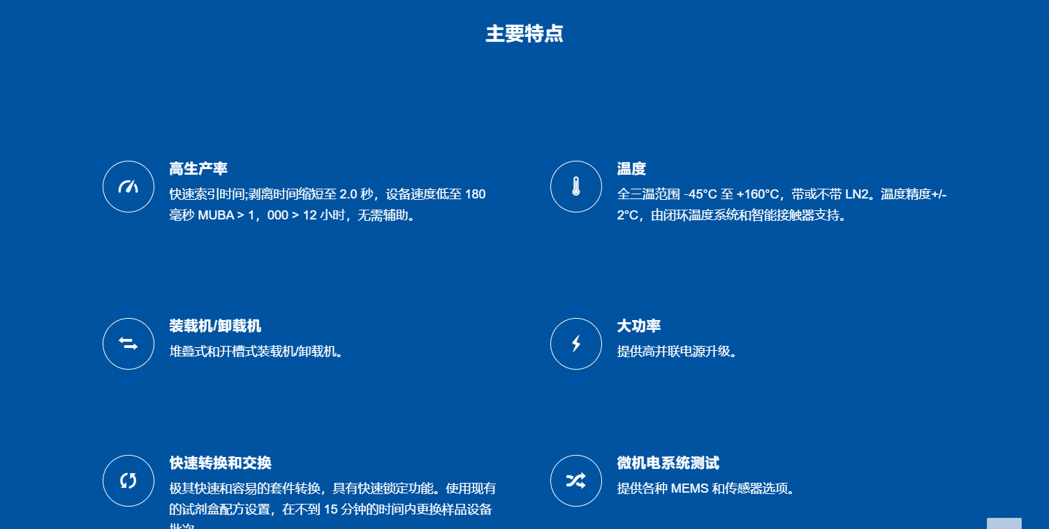 用于自動(dòng)化半導(dǎo)體器件運(yùn)動(dòng)、在測(cè)試期間控制溫度和提供視覺檢測(cè)的設(shè)備組合;確保質(zhì)量并優(yōu)化批量生產(chǎn)的產(chǎn)量。